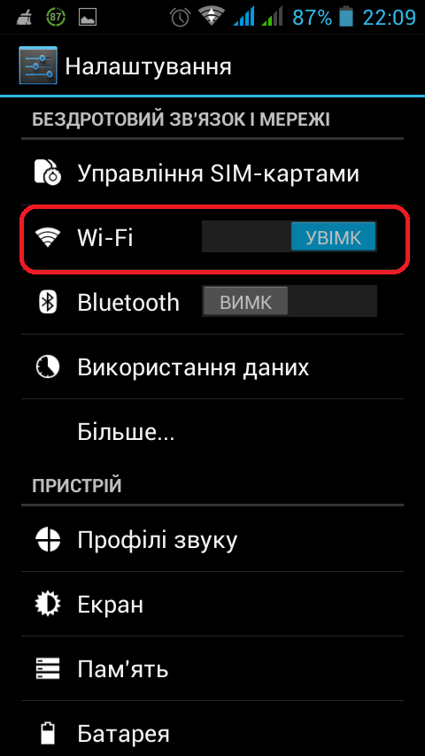 В настройках тиснемо по Wi-Fi або VLAN