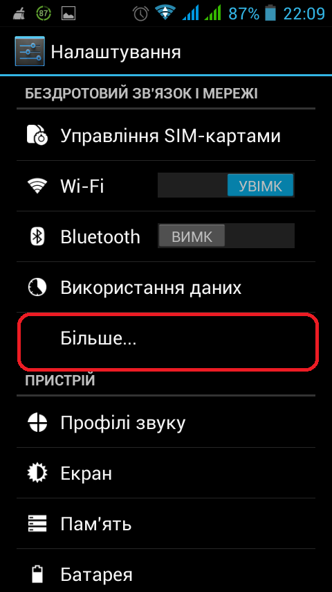 Повертаємось назад в Налаштування і тиснемо Більше.