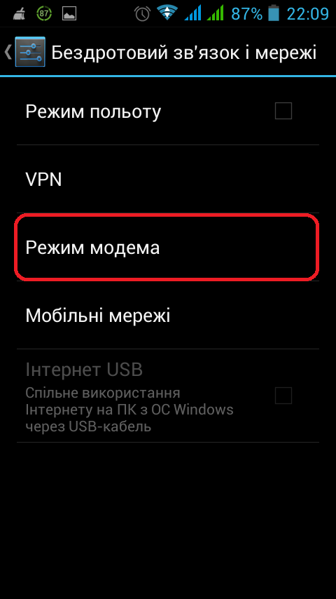 Вибираємо Режим модема